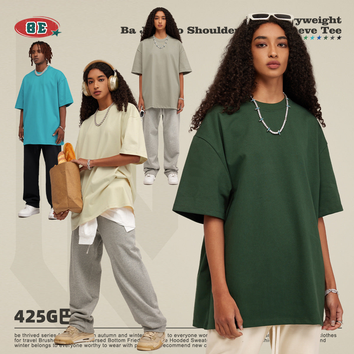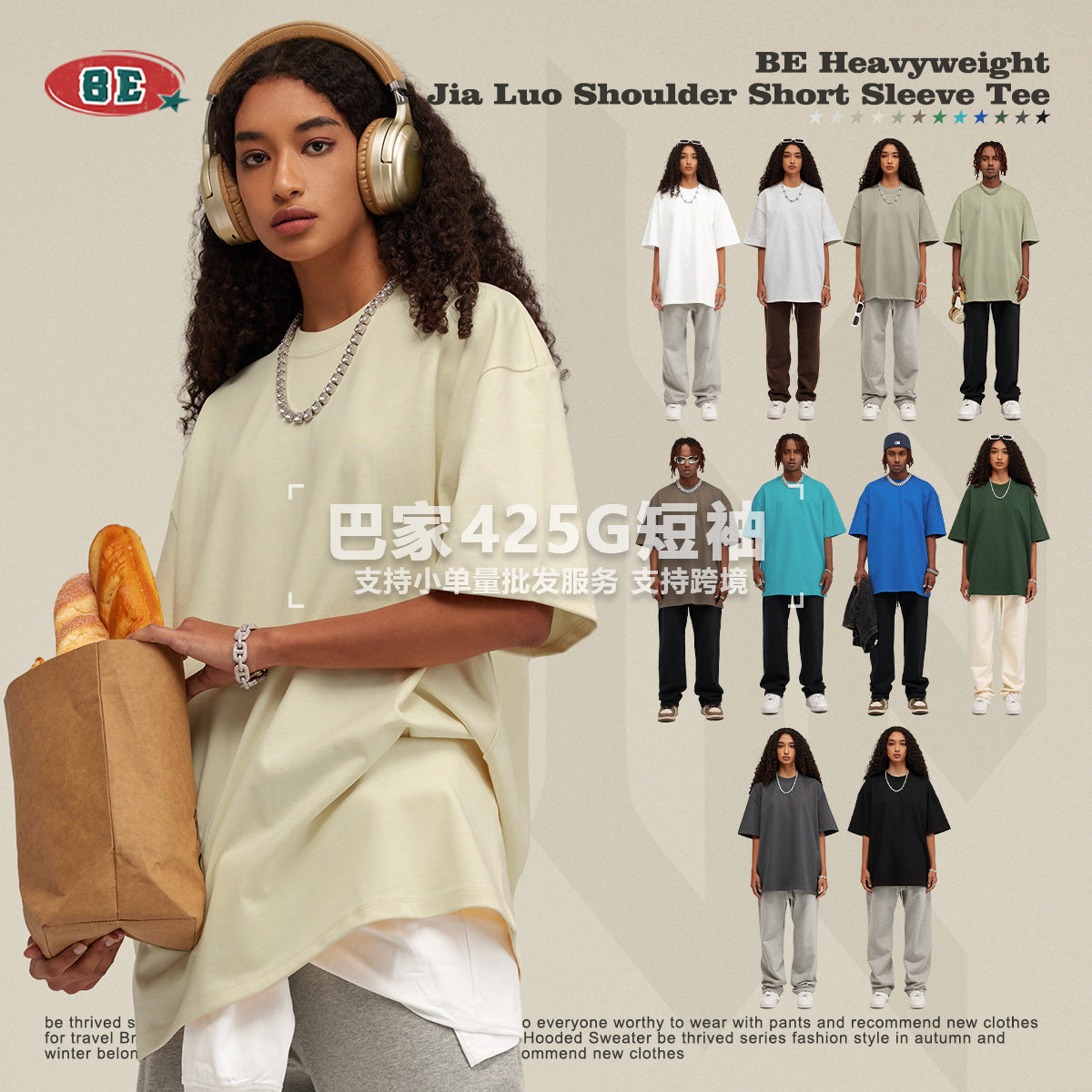 Be Men's 2024 Bashi Cotton T-shirt Heavy Loose Teen Short-Sleeved Men's T Summer Fashion Brand Short Sleeve T-shirt Men's