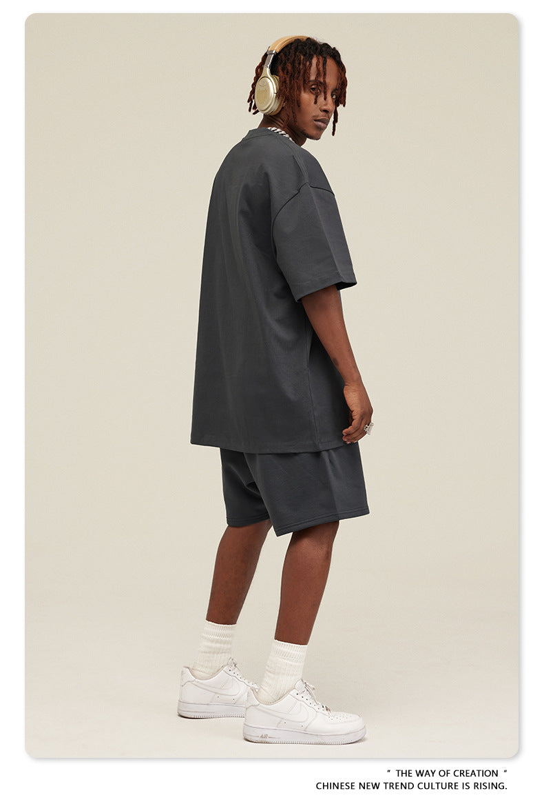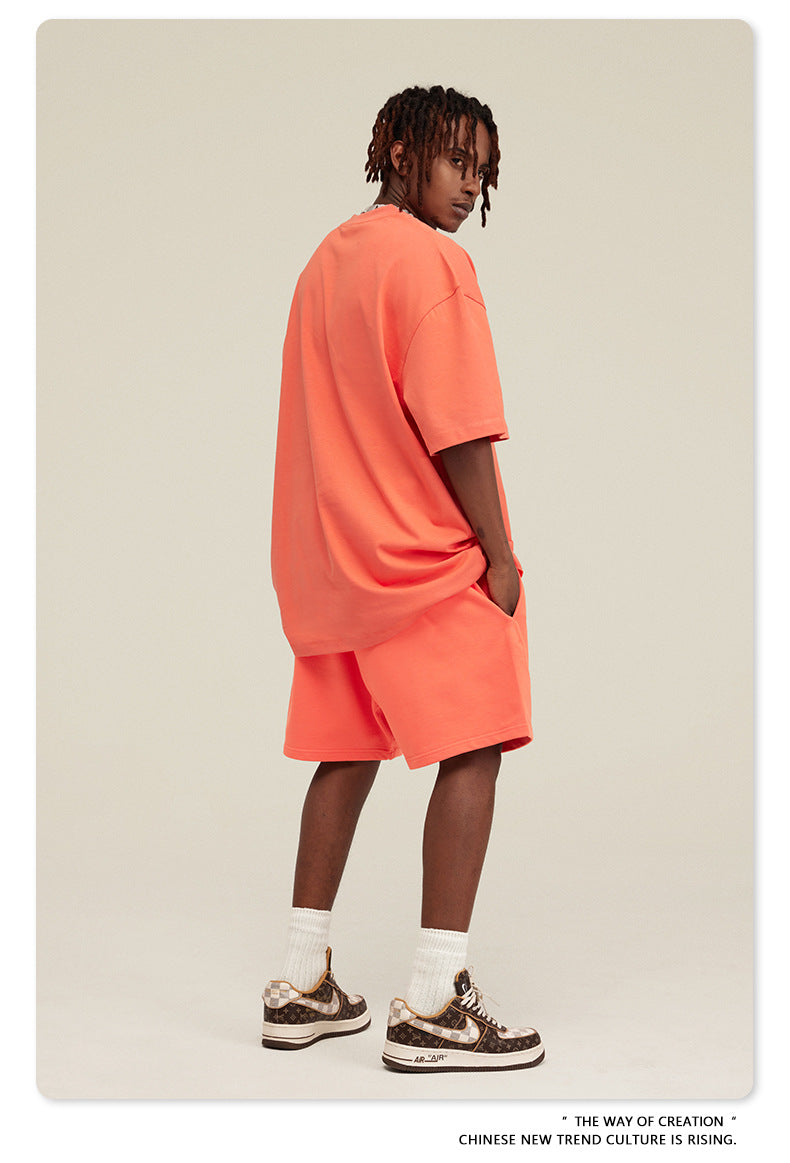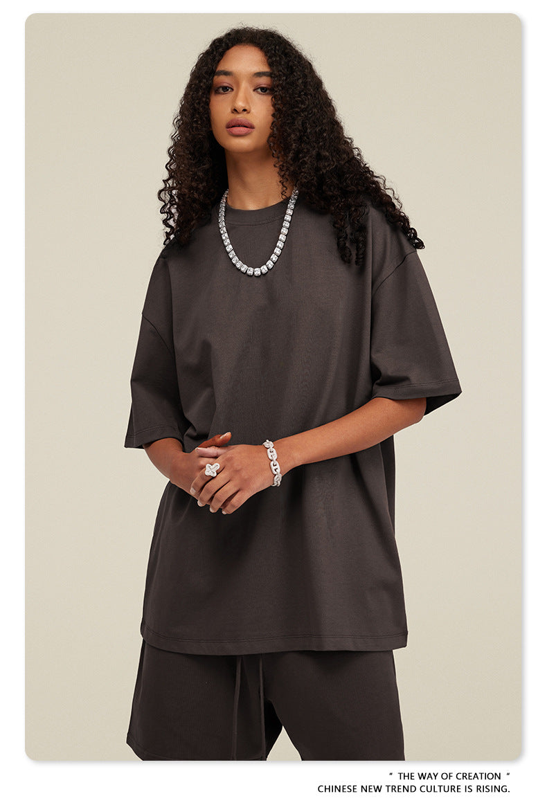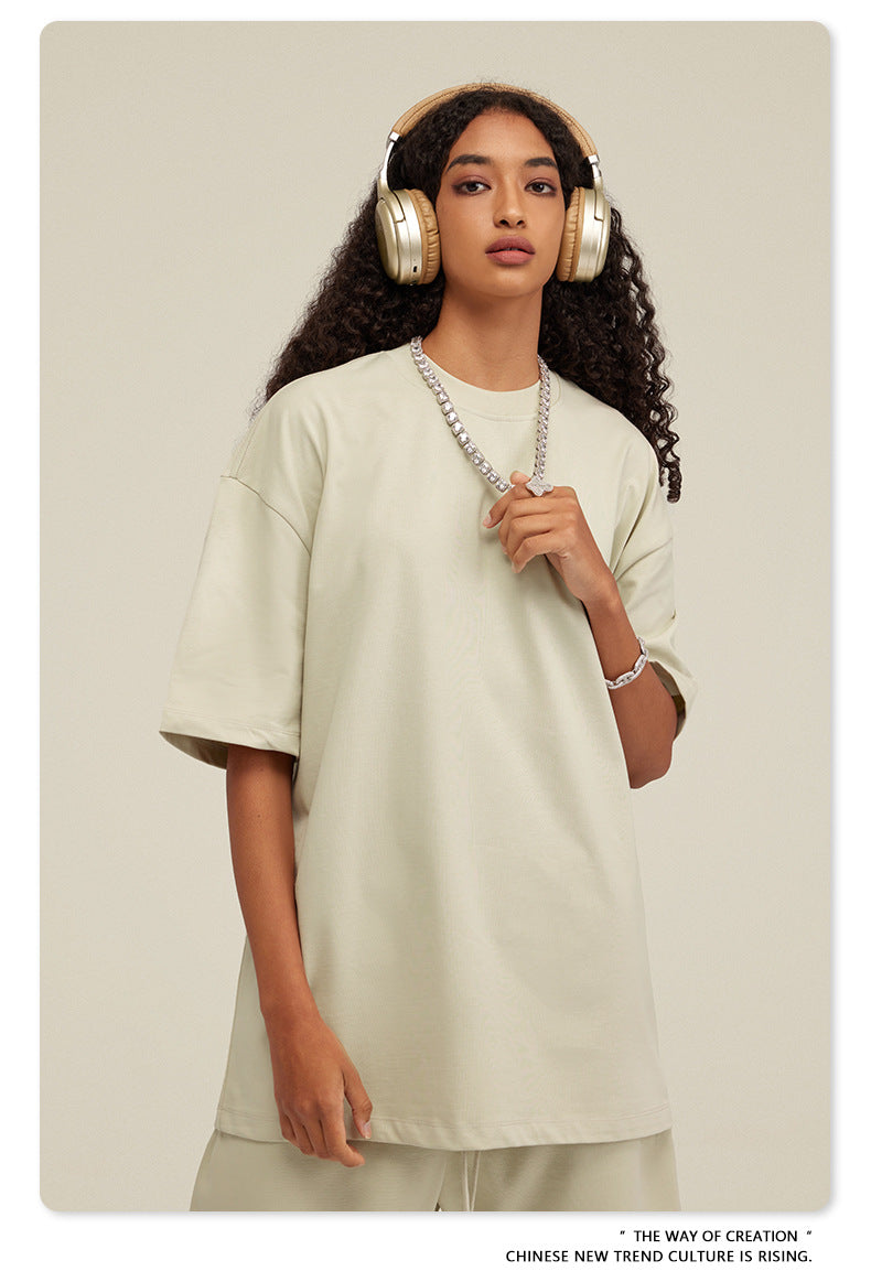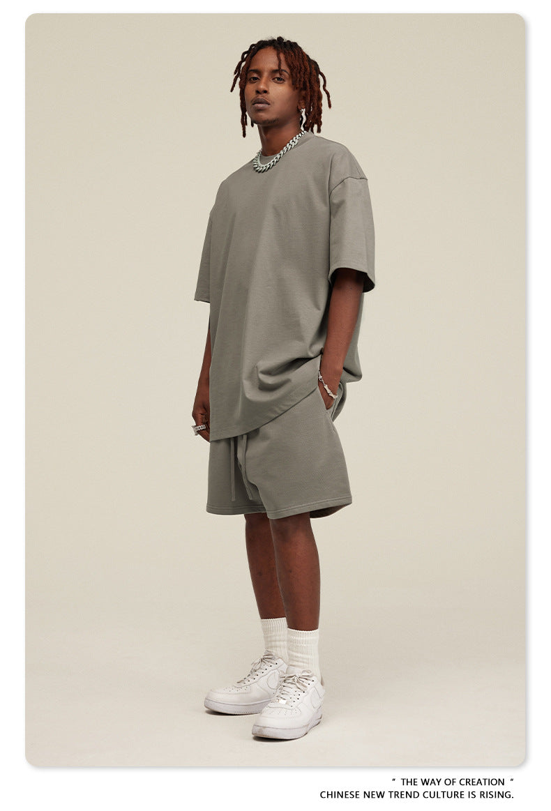 Be Men's 2024 Spring and Summer 305G Heavy T-shirt Men's American Cotton Fashion Brand Solid Color Short Sleeve Teen T-shirt