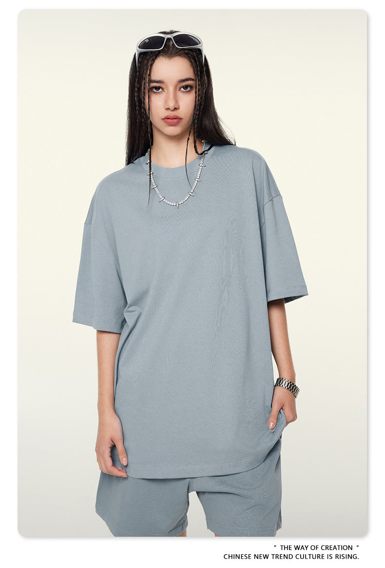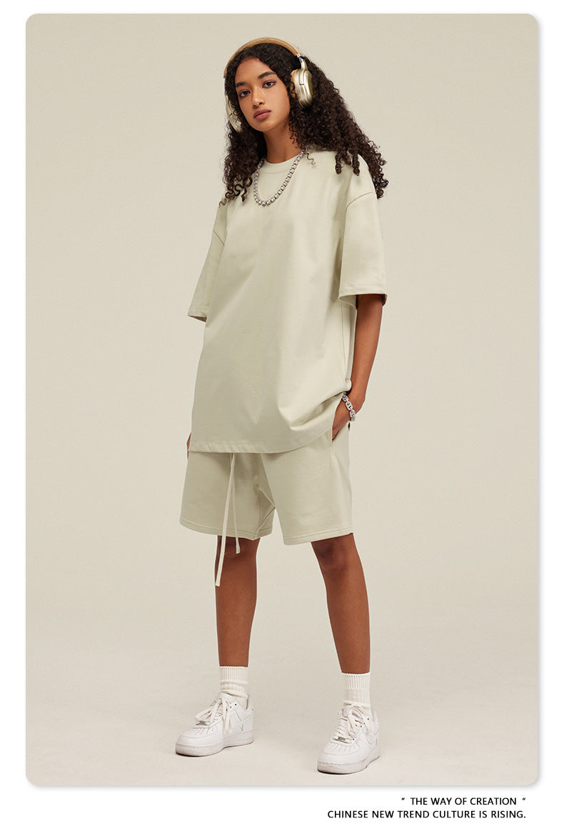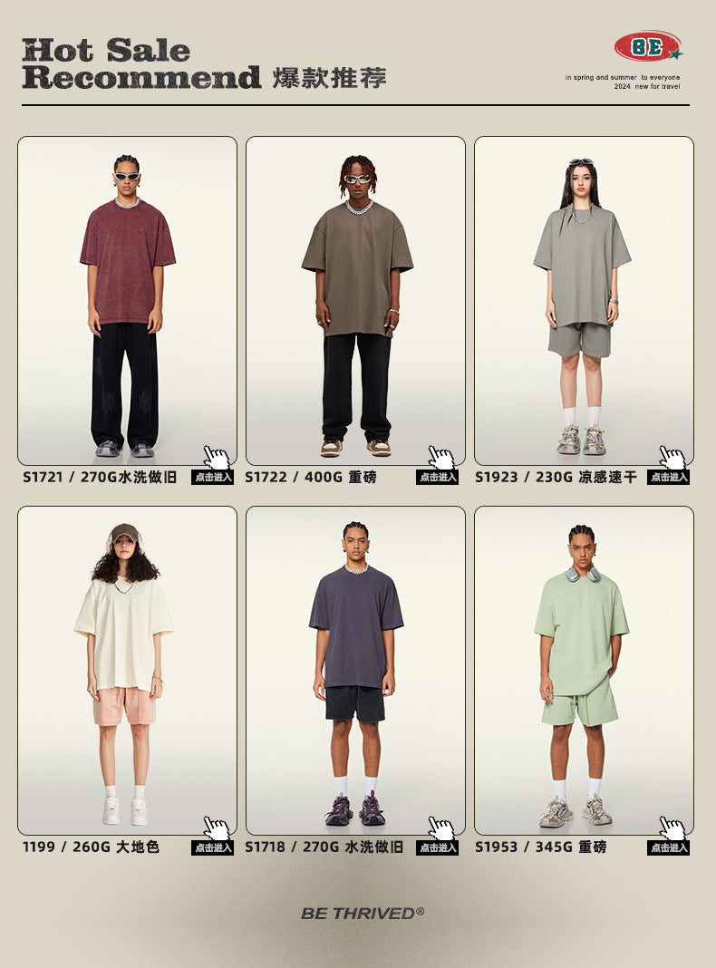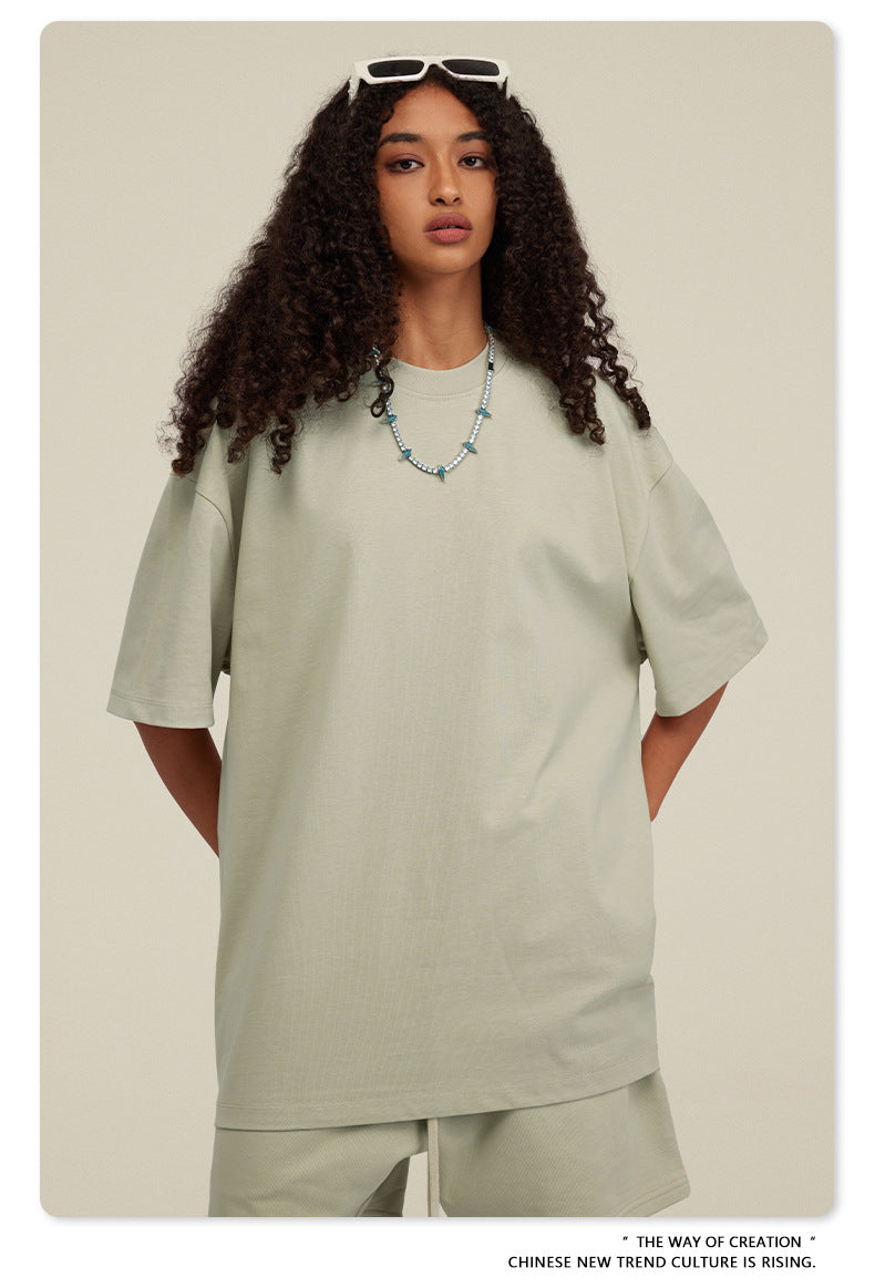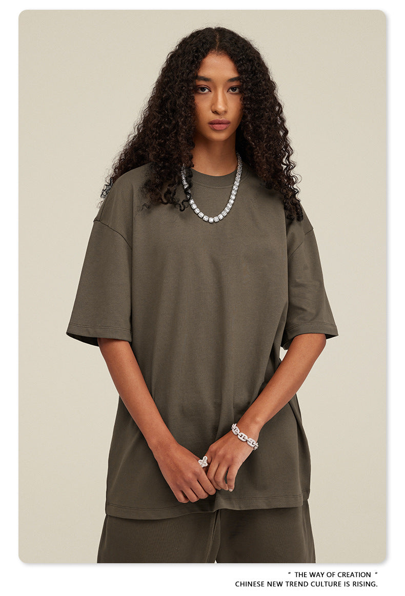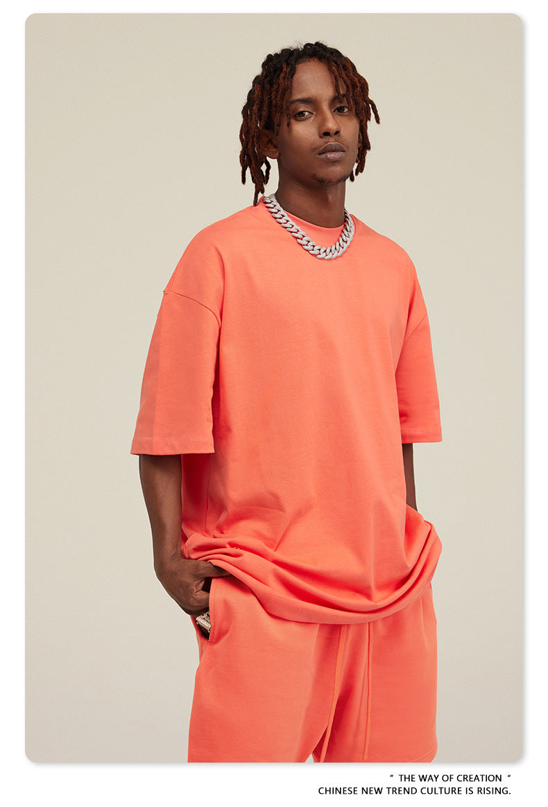 Be Men's 2024 Spring and Summer 305G Heavy T-shirt Men's American Cotton Fashion Brand Solid Color Short Sleeve Teen T-shirt