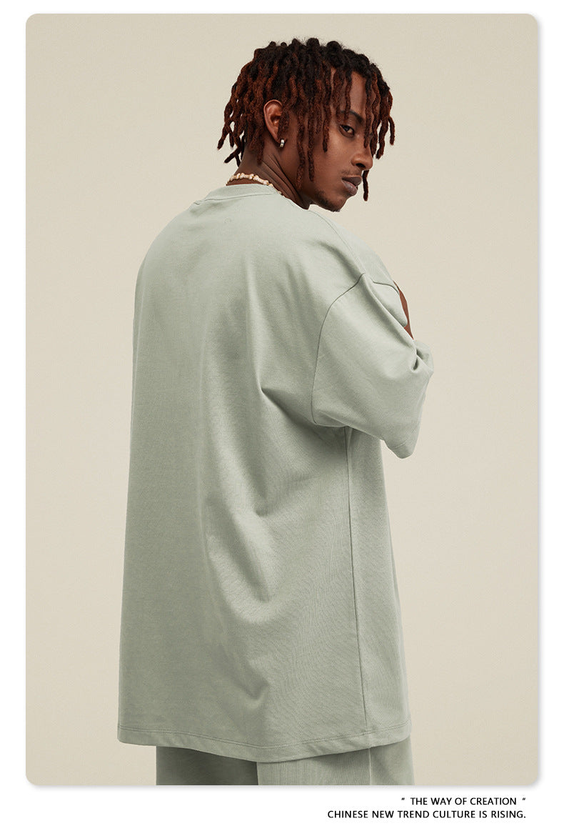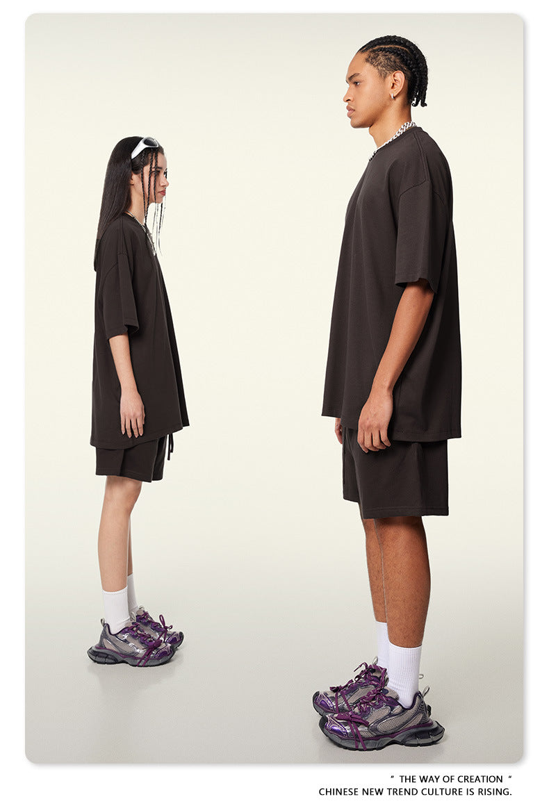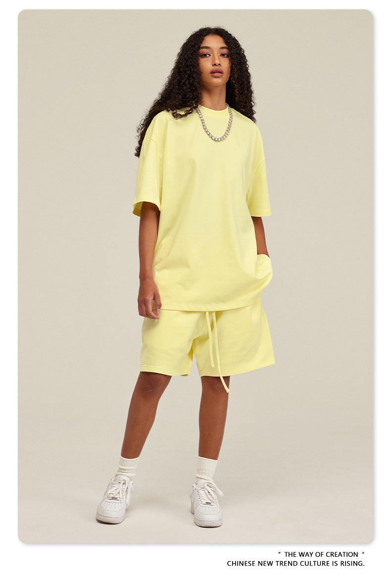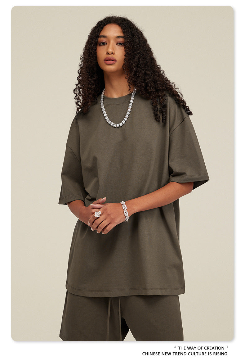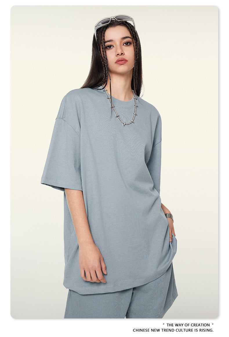 Be Men's 2024 Spring and Summer 305G Heavy T-shirt Men's American Cotton Fashion Brand Solid Color Short Sleeve Teen T-shirt
