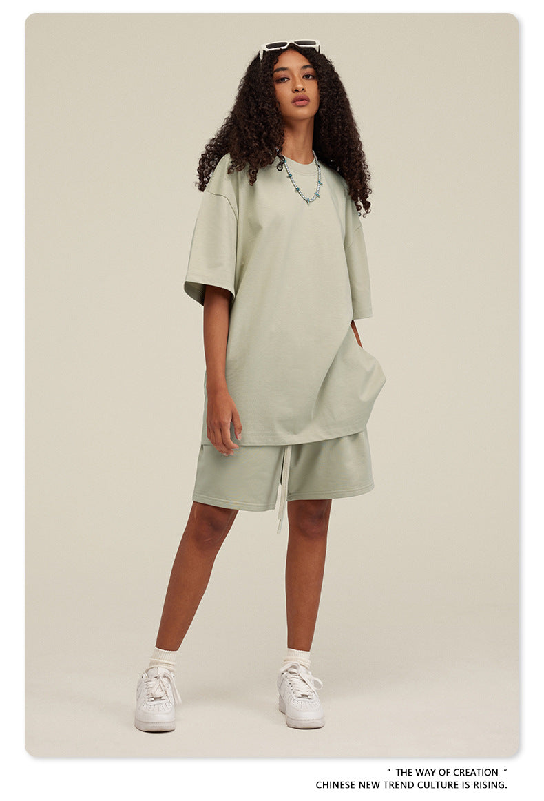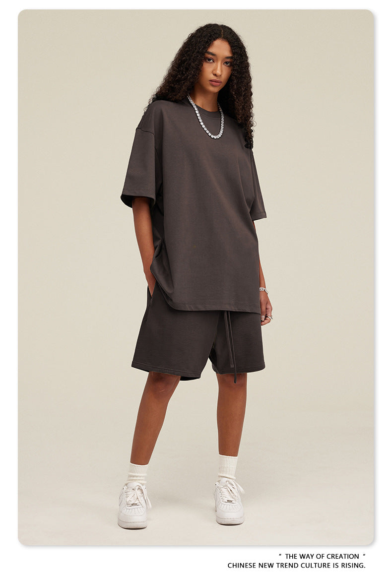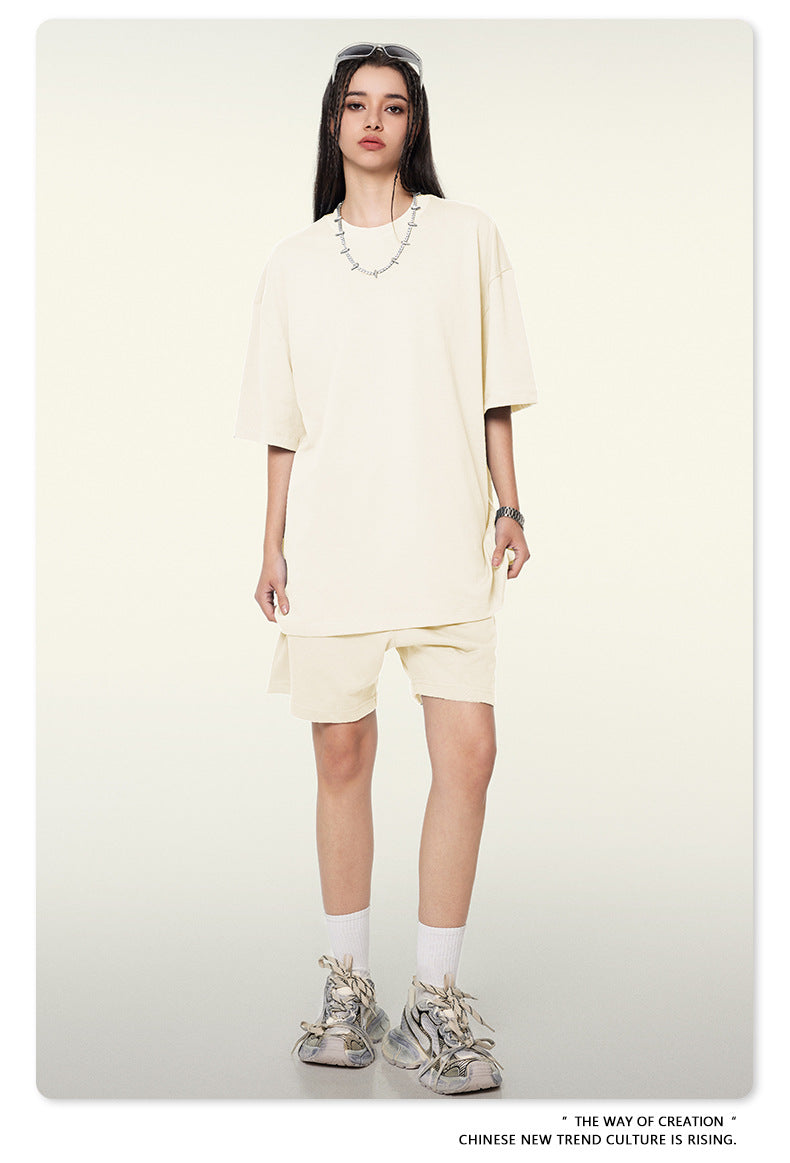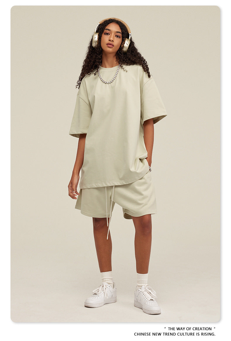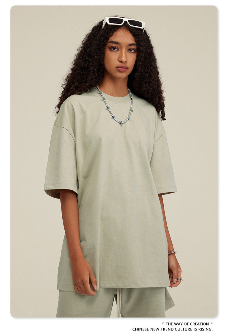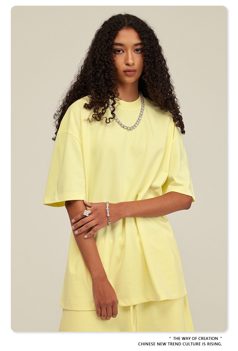 Be Men's 2024 Spring and Summer 305G Heavy T-shirt Men's American Cotton Fashion Brand Solid Color Short Sleeve Teen T-shirt