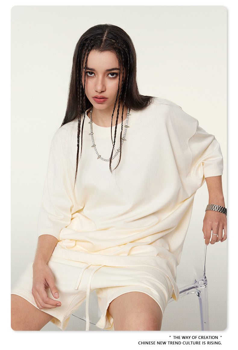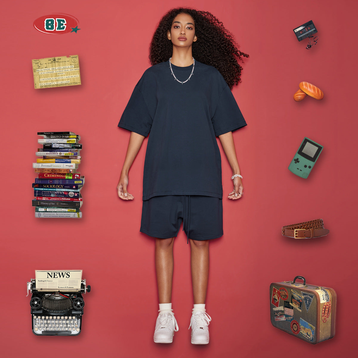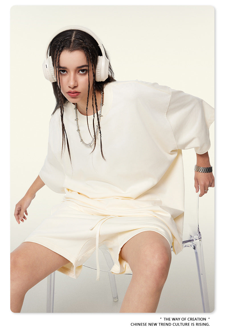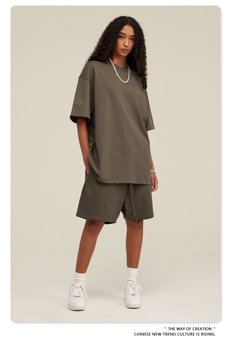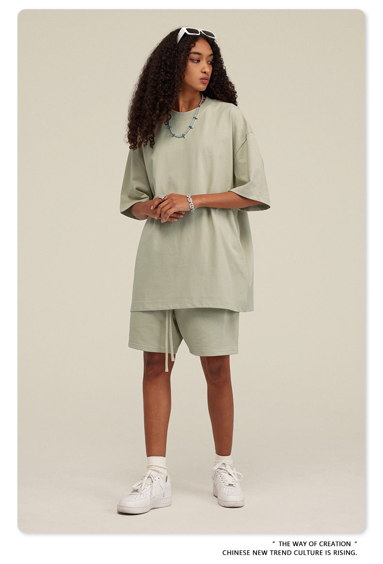 Be Men's 2024 Spring and Summer 305G Heavy T-shirt Men's American Cotton Fashion Brand Solid Color Short Sleeve Teen T-shirt