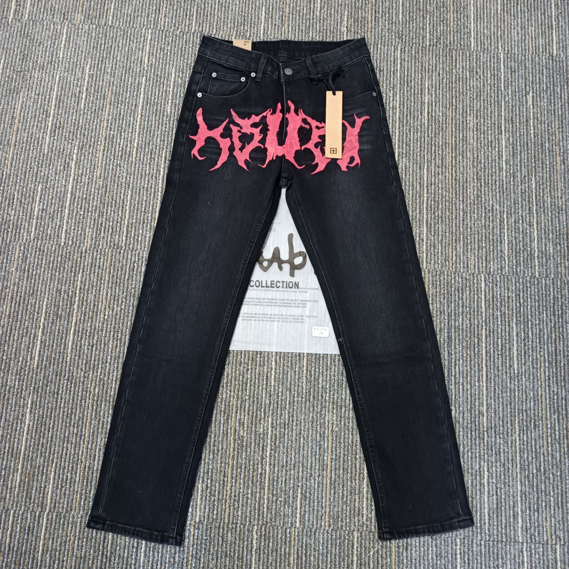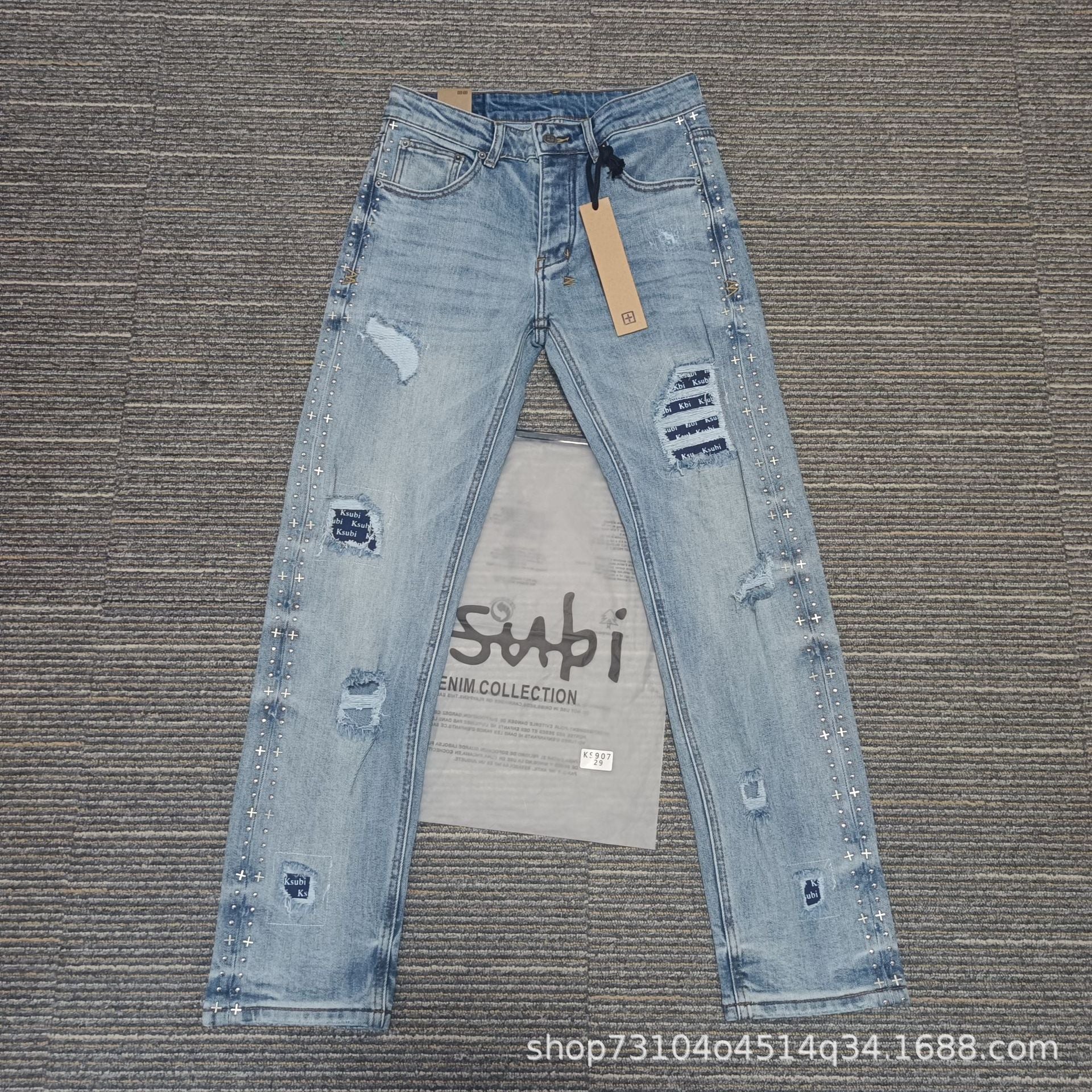 KSB Jeans Straight Ripped Stretch American High Street Casual Men's Jeans