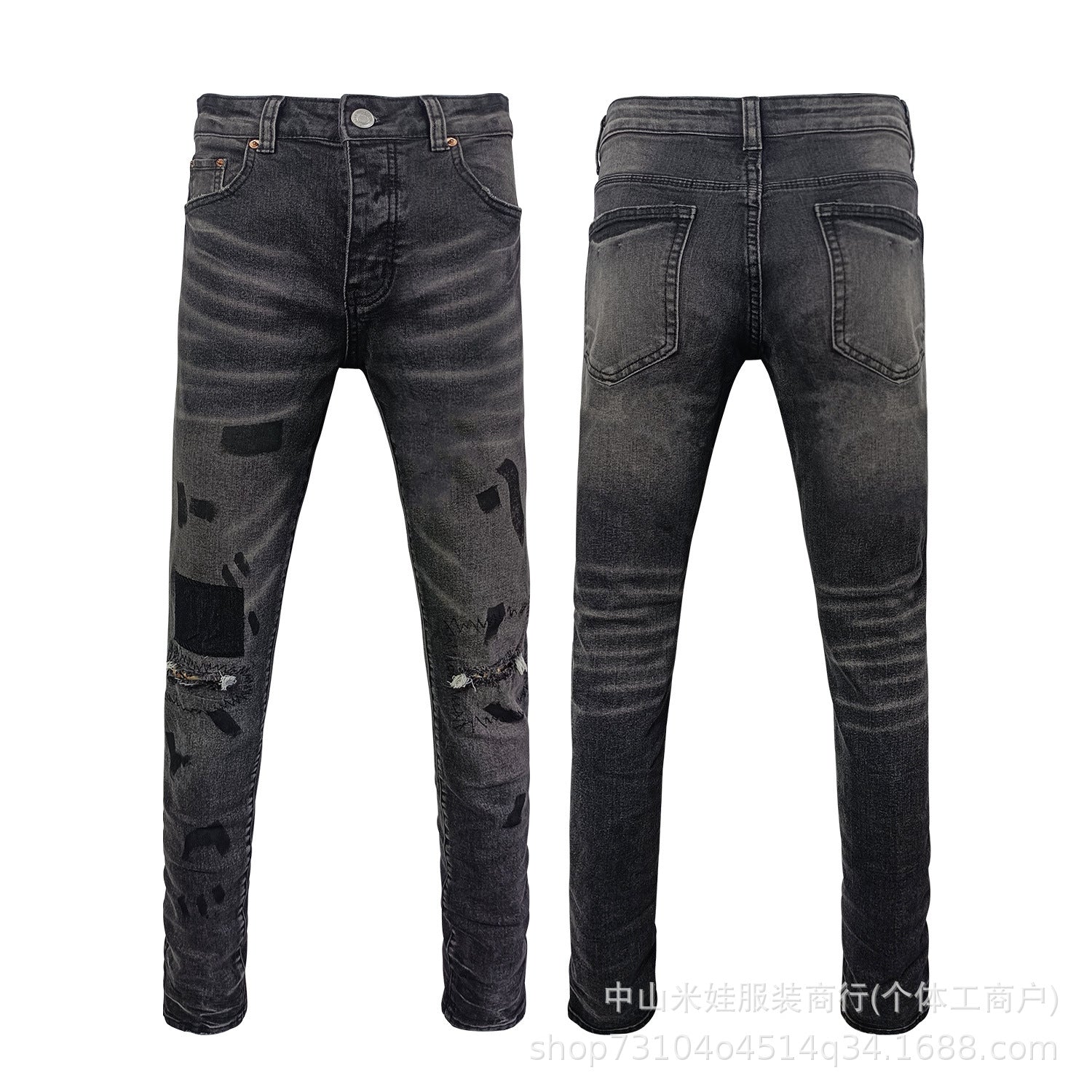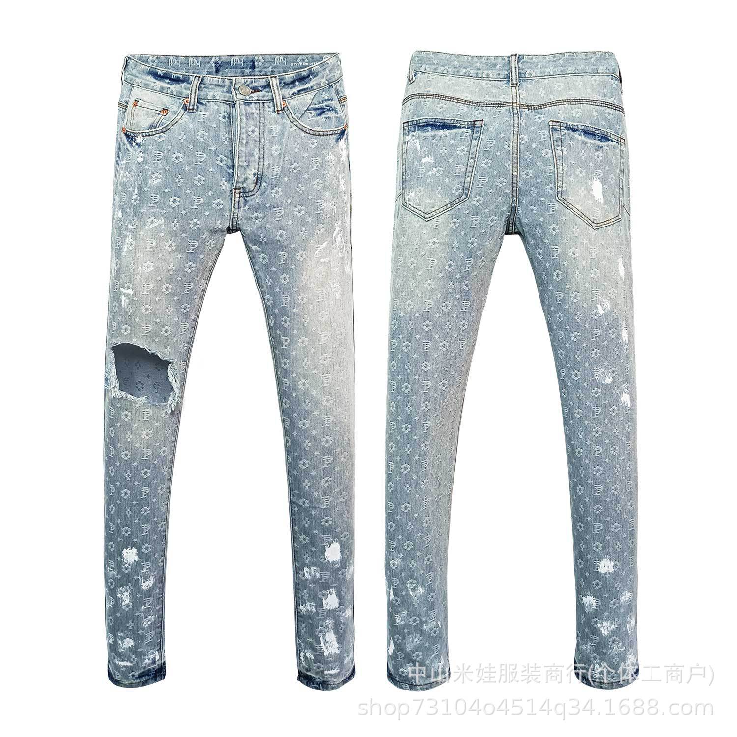 Pp6601 Purple Jeans American Style Hip Hop Ripped Jeans