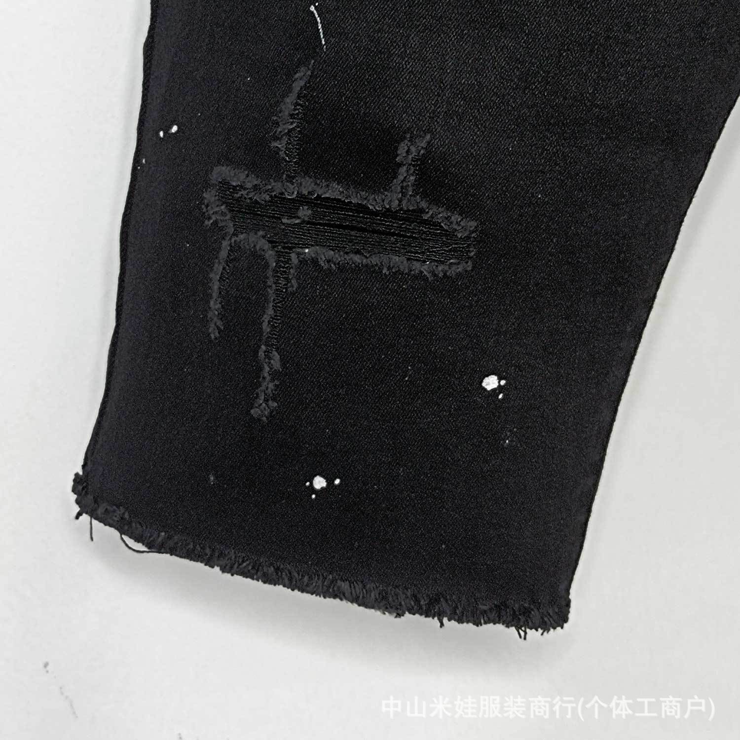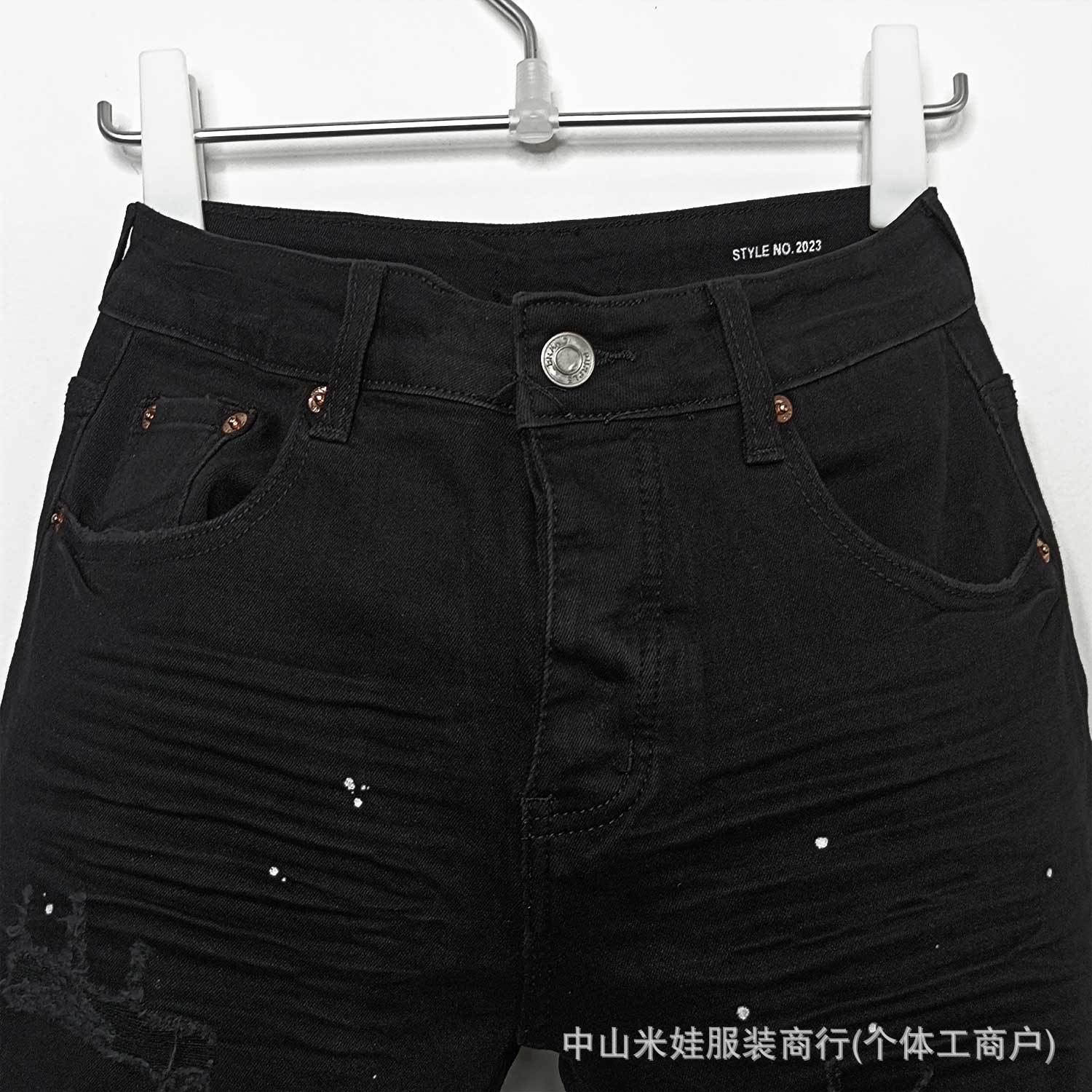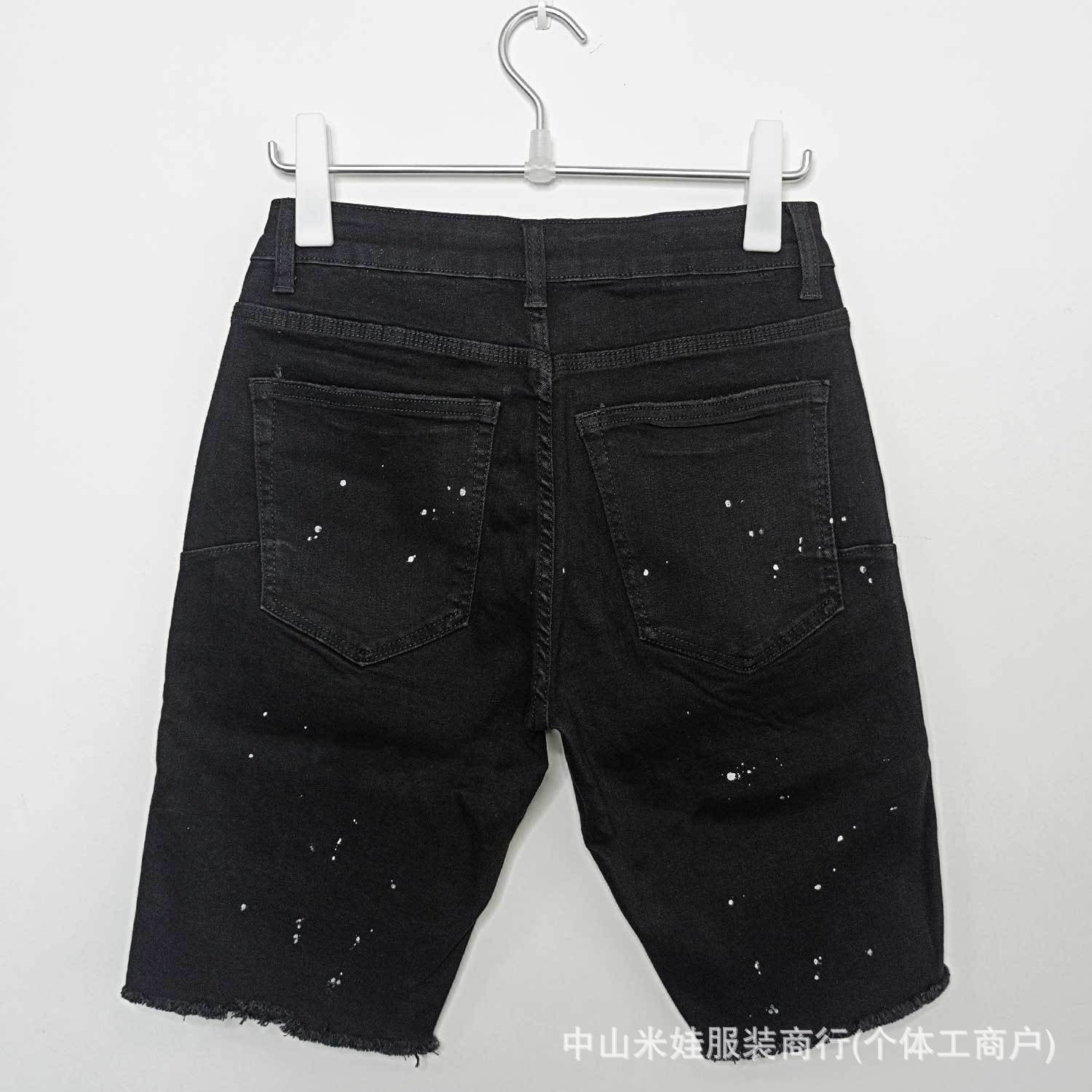 Purple Jeans Men's Distressed Denim Shorts Five-Point Shorts