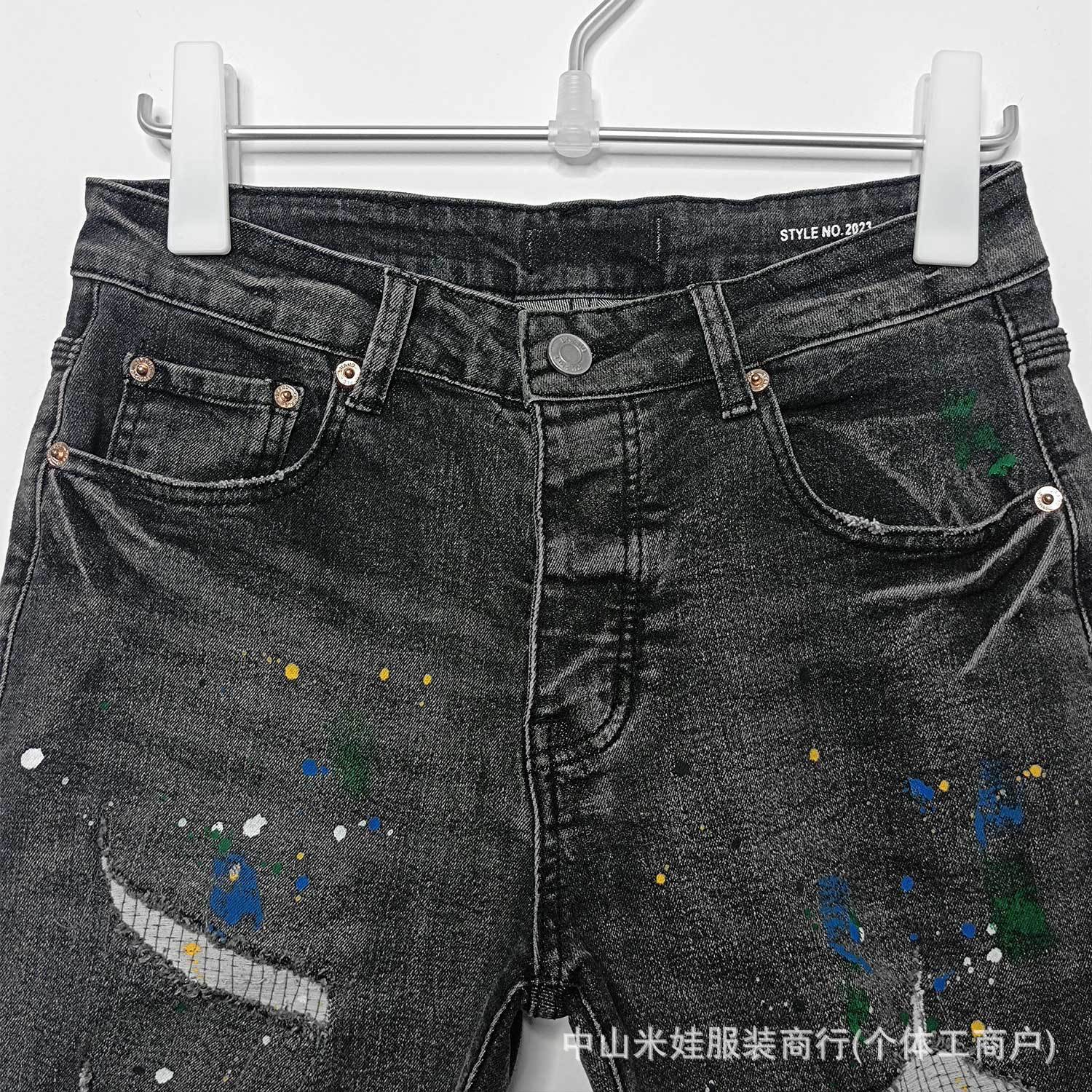 Purple Jeans Splash-Ink Jeans Washed Do the Old Cowboy Denim Shorts